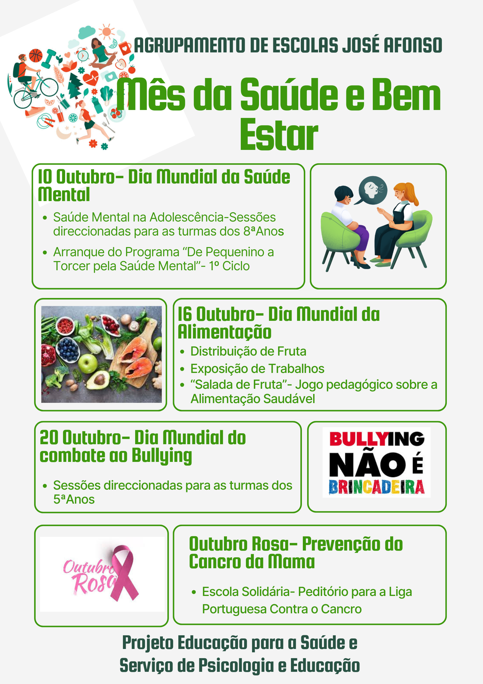 Chegou outubro, e com ele o mote “Mente sã, corpo são!”, que marca o Mês da Saúde e do Bem-Estar no nosso agrupamento.